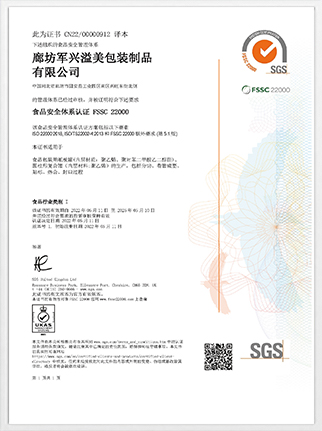 在同行業中,軍興溢美率先通過FSSC22000食品安全體系認證。